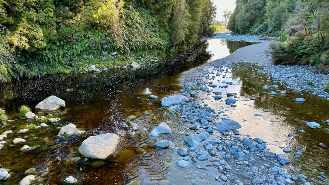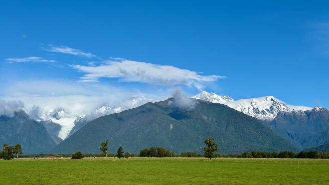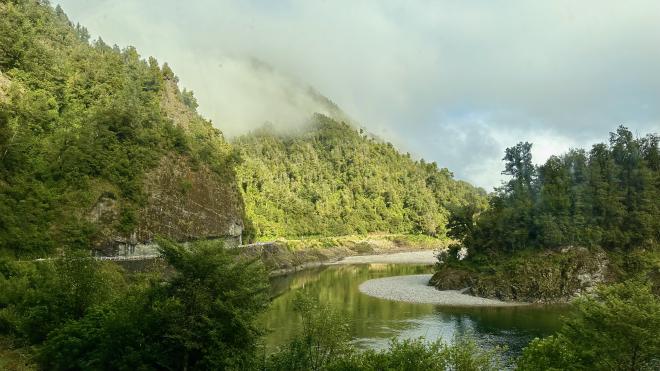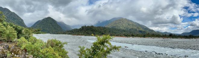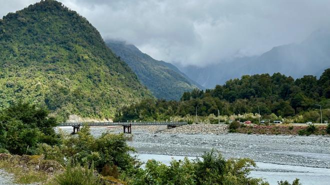 Franz Josef is beside the Waiau River, which is fed from the Franz Josef Glacier and mountain runoff. It floods quite frequently, so there’s a large dike between the river and the town.