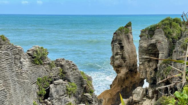 This is one of the inner pools at Pancake Rocks. When the tide is high and the surf is up, the water comes shooting up through blowholes in the rocks. Conditions weren’t quite right for that during our visit, but it was still spectacular.