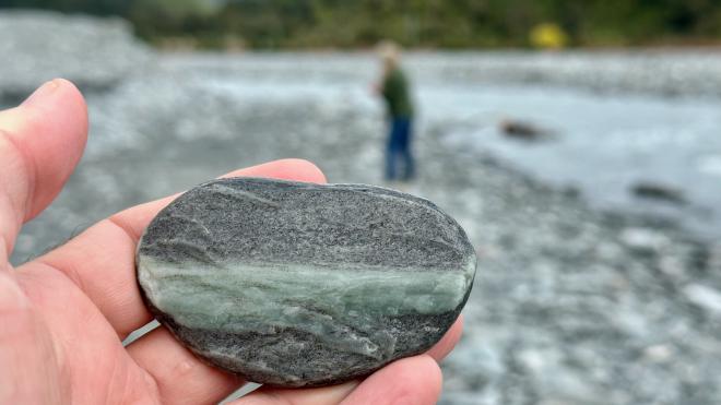 This was probably the nicest one we found, with a vein of Pounamu or Greenstone in the middle. Unfortunately it was a bit large to pack.