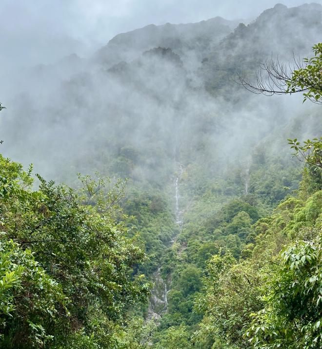 We had beautiful views of waterfalls through the mist on our walk to the glacier viewing point.