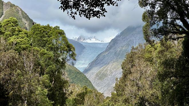 The next morning was a bit gloomy, and we had no fixed plans, so we stayed in the motel room and caught up on some work and maintenance. By afternoon it had cleared, so we headed out to find a souvenir magnet and see the area adjacent to the Franz Josef townsite.