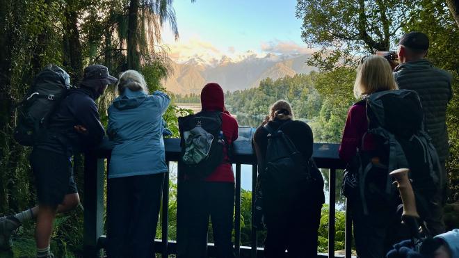 The next day we had booked three walking tours back-to-back with Glacier Valley Eco Tours, to Franz Josef Glacier, Fox Glacier, and Lake Matheson. It was a long day, running twelve hours from 9:30 am, but turned out to be well-worth the time and exertion.