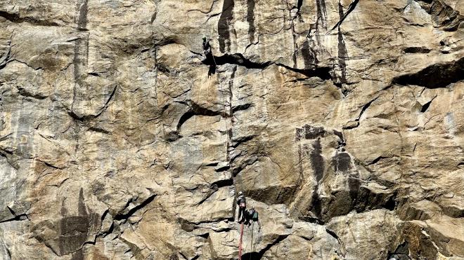 Here’s a closeup. While we were watching them, the lead climber fell at least three times, caught by their rope on each fall. It was a little nerve-wracking to see, but we can only assume they knew what they were doing.
